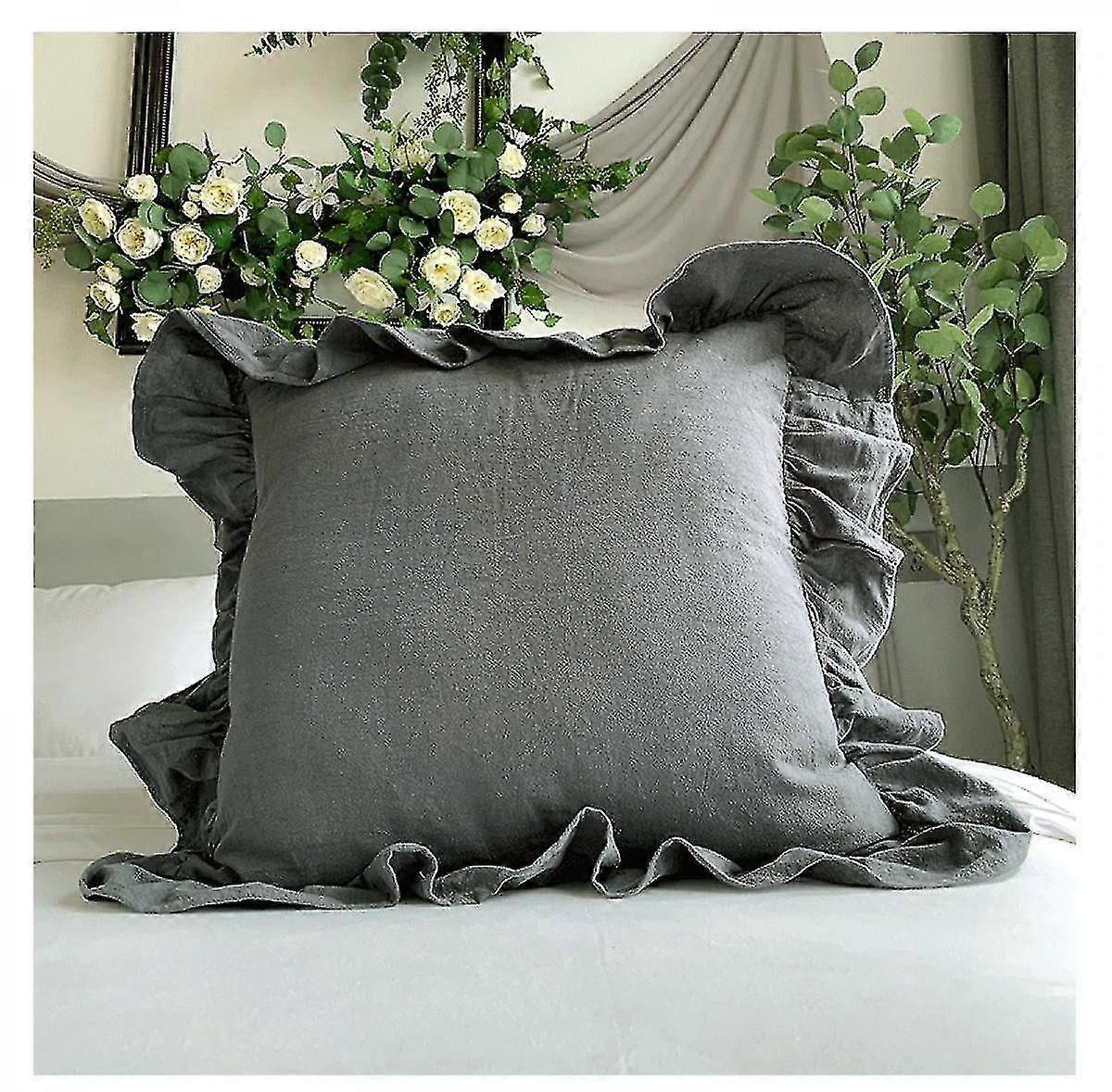 Wekity Set Of 2 Solid Color Ruffle Pillowcases (grey, 18 X 18 Inch)