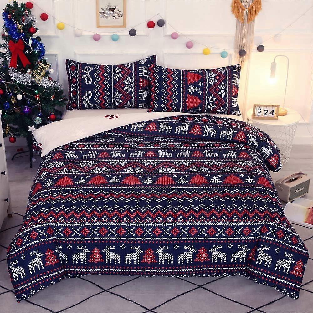 Christmas Patchwork Pattern Duvet Cover Sets 220x240 cm with 2 x Pillowcases 50x75 cm, Microfiber Bedding Set