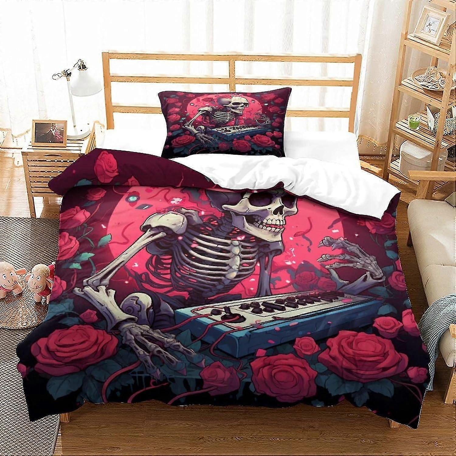 Human Skeleton Duvet Cover Sets for Kids and Teens, Soft and Breathable 3D Printed Quilt Cover with Pillowcase