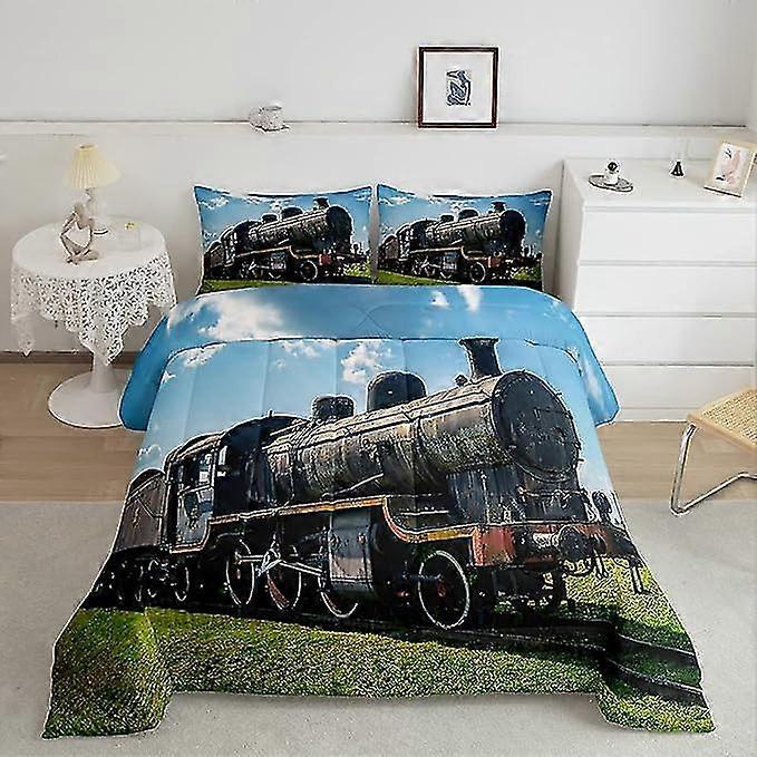 2025 Train Microfiber Bedding Duvet Cover Sets 1 Duvet Cover And 1/2 Pillowshams Retro Steam Engine