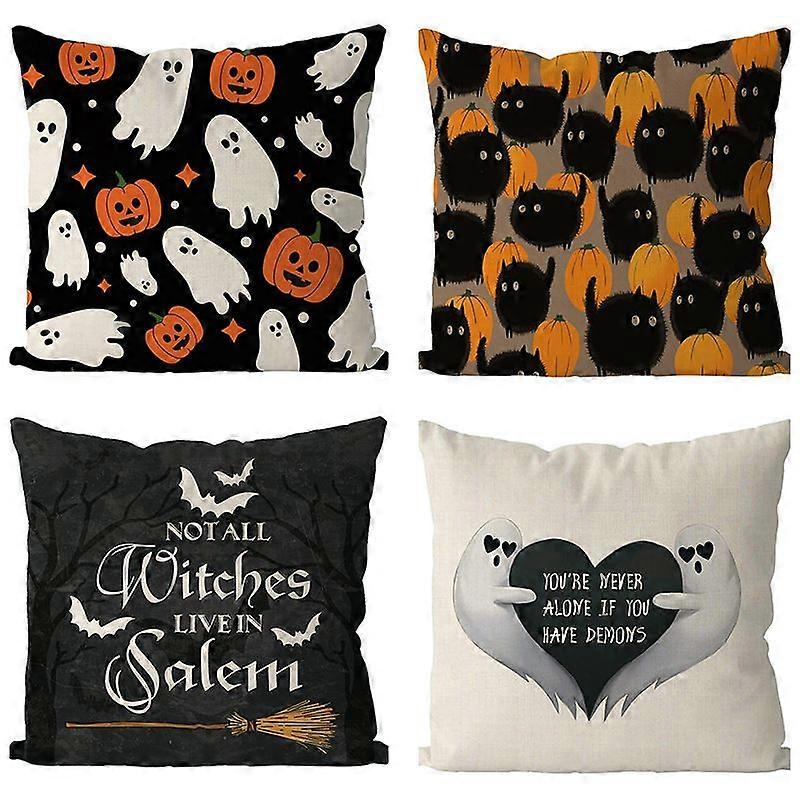 Sets of Halloween Sofa Pillowcases with Halloween Pumpkin Little Ghost Pillowcases, Simple Style Decorative Pillowcases for Living Room Bedroom Sofa (