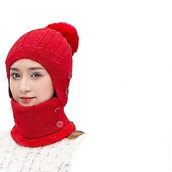 Conjuntos mais quentes de capneck de malha quente de inverno, chapéu de beanie de malha flexível com bola de cabelo, bege (a-1b)