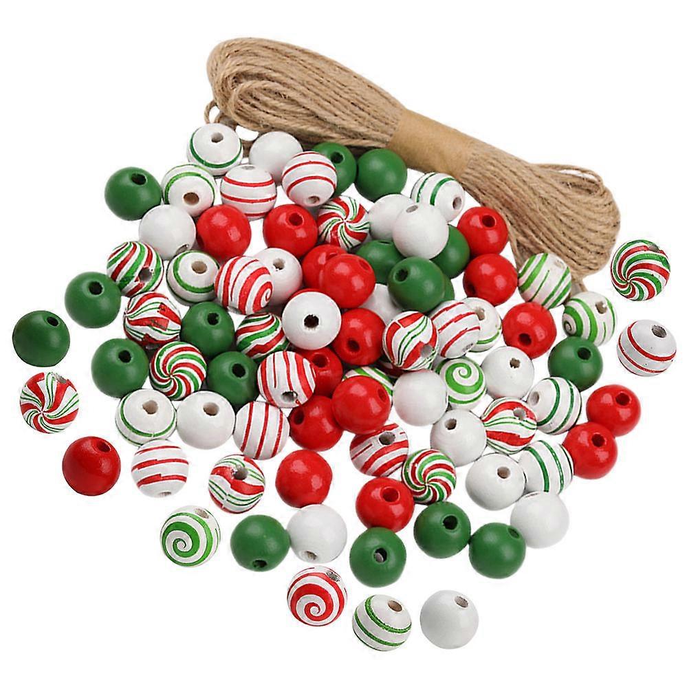 Wooden Beads Christmas Beads for Crafts 2Sets with Hemp Rope Included