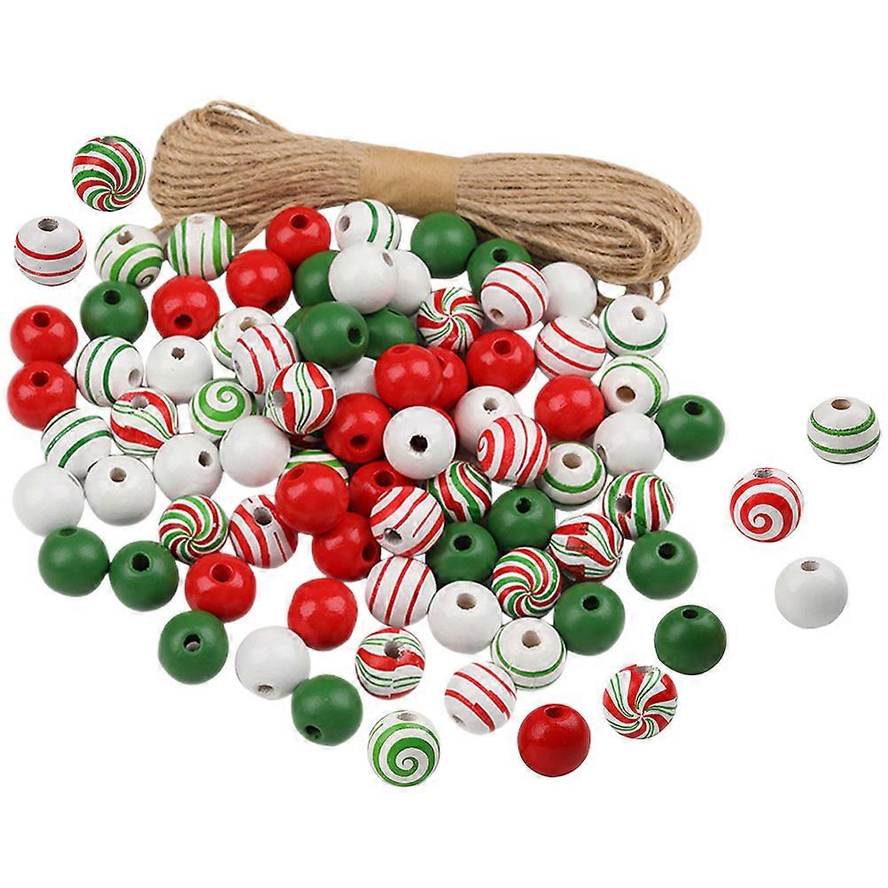 DIY Wooden Beads Christmas Beads for Decoration 2Sets with Hemp Rope