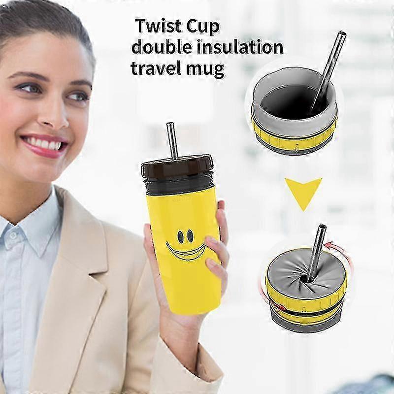 2025 Portable Coffee Straw Cup French Coverless Cup Creative Twist Lid Thermos Double-walled Ice Cold Drink Coffee Juice Tea Cups