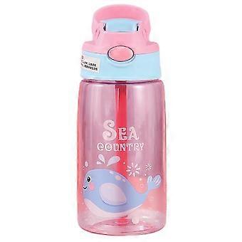 480ml Children Straw Cup Transparent Cartoon Pattern Portable Sippy Cup Outdoor Water Bottle Boys Girls
