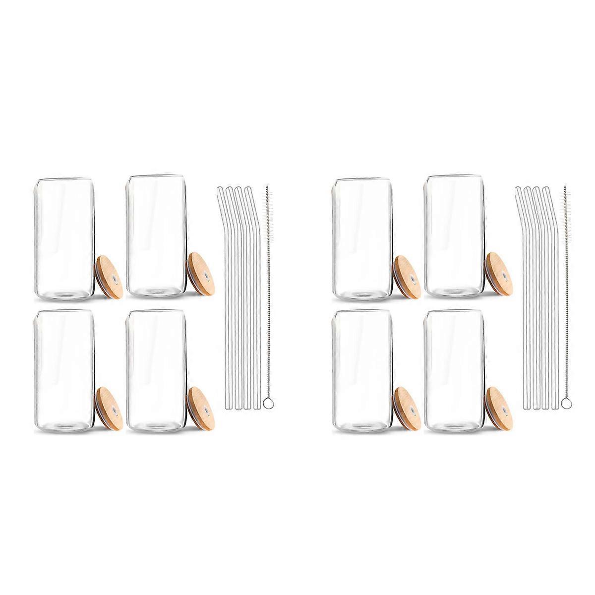 Beer Can Glass with Bamboo Lids and Glass Straws,8 Pack 16Oz Drinking Glasses with Lids and Straws,C