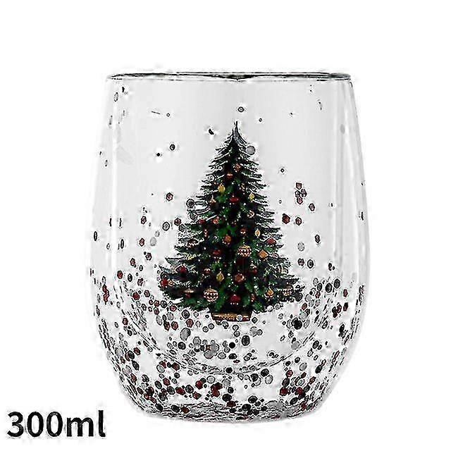 Creative Christmas Tree Glass Cup 300ml Heat-Resistant Double Wall Glass Cup Coffee Mug with Lid Cute Christmas Gifts for Girls