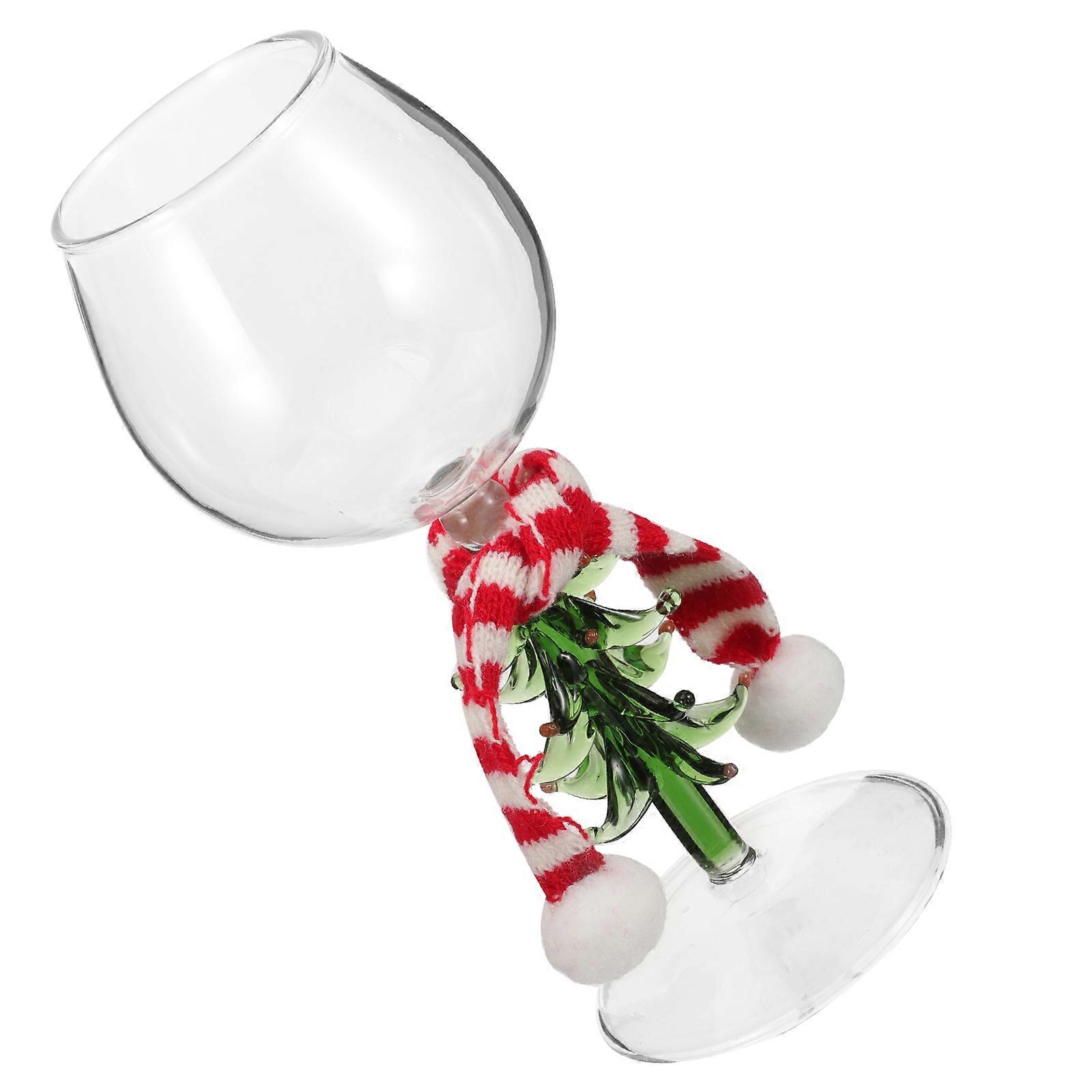 Christmas Wine Glass with Scarf and Christmas Tree Base for Home Use Green Color Safe and Glass 7.87 Inches