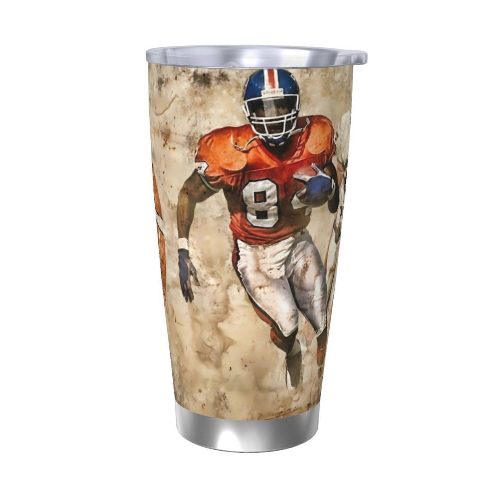 Broncos Football Team Theme 20oz Stainless Steel Thermos Cup with Lid & Straw, Compatible with Car Cup Holders, for Hot & Cold Drinks
