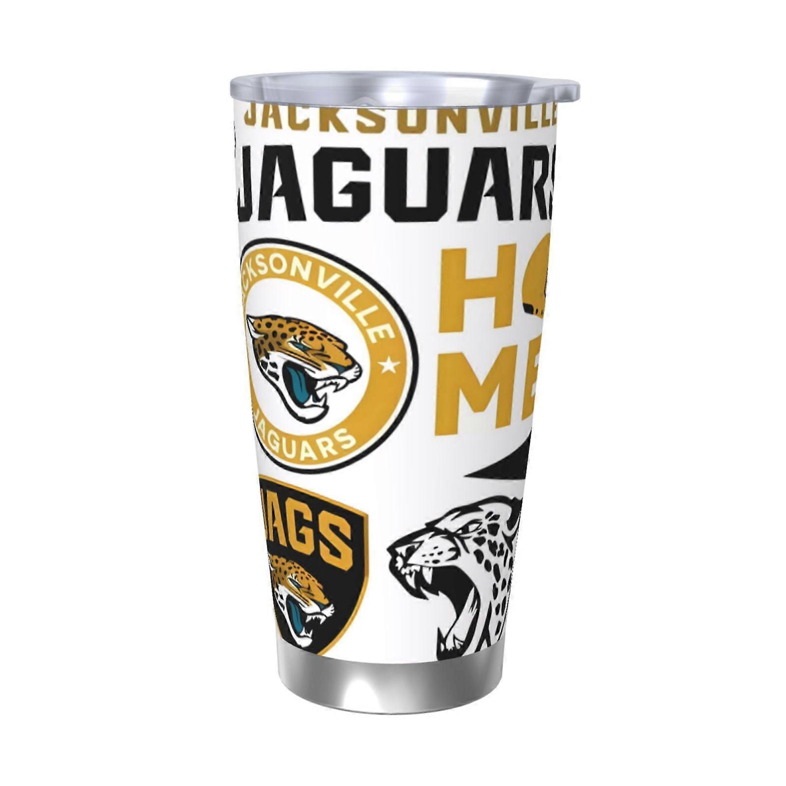 Jaguars Football Team Theme 20oz Stainless Steel Thermos Cup with Lid & Straw - Compatible with Car Cup Holders, Hot & Cold Drinks
