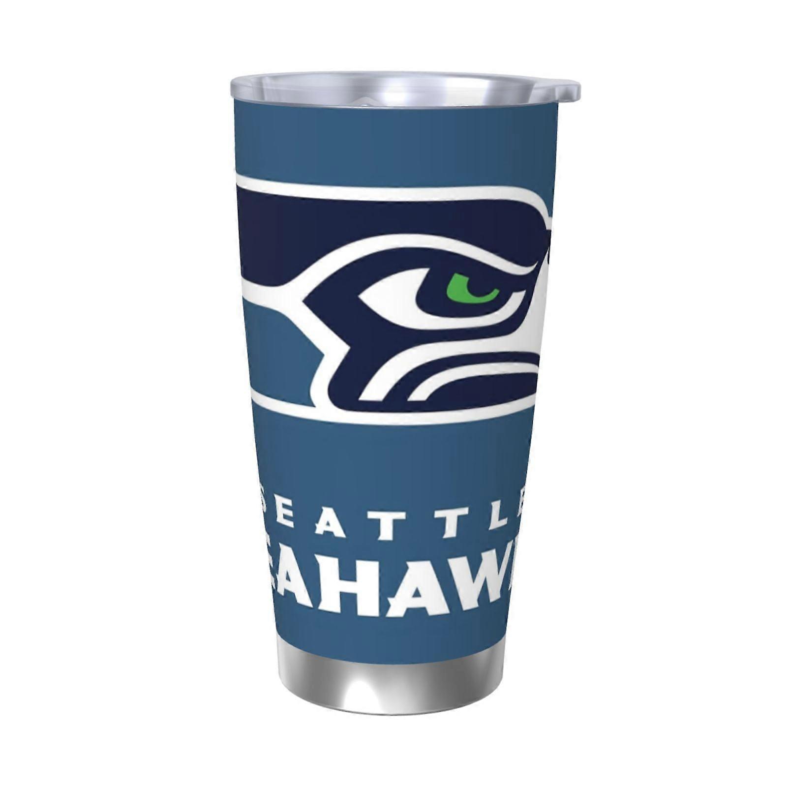 Seahawks Football Team 20oz Stainless Steel Thermos Cup with Lid & Straw - Compatible with Car Cup Holders, Hot & Cold Drinks