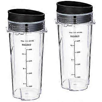 Copos de Substituição de 16oz Para Liquidificador Pessoal Compacto Ninja Qb3001ss Cab, Com Tampas- 2 PacotesTransparente Preto SZRH A-W