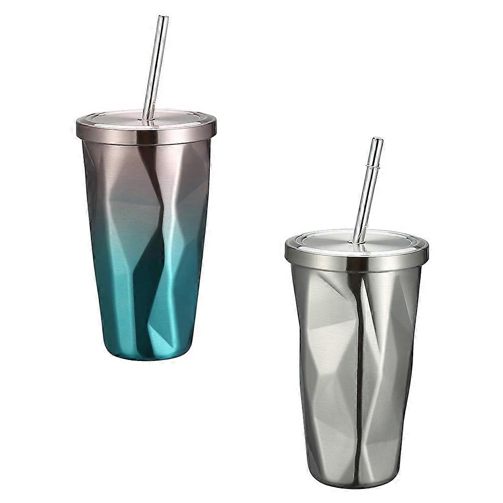 Fashionable 2Pcs Portable Stainless Steel Cups With Straw Ideal For Home Office Outdoor Use Stylish Design Quality