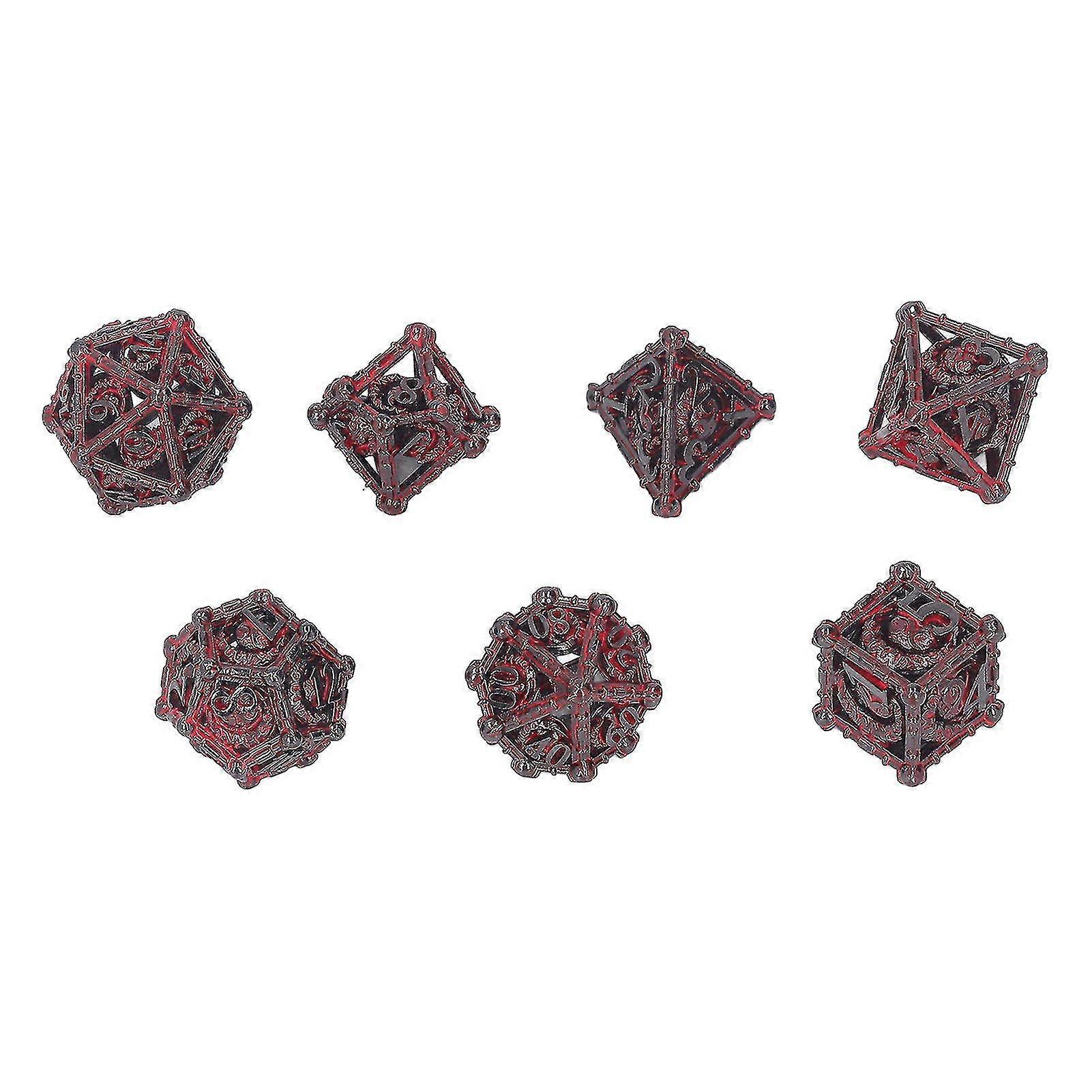 Copper Polyhedral Dice Set - 7pcs Metal Dice Set for Board Games with Blood Stains Hollow Up Design