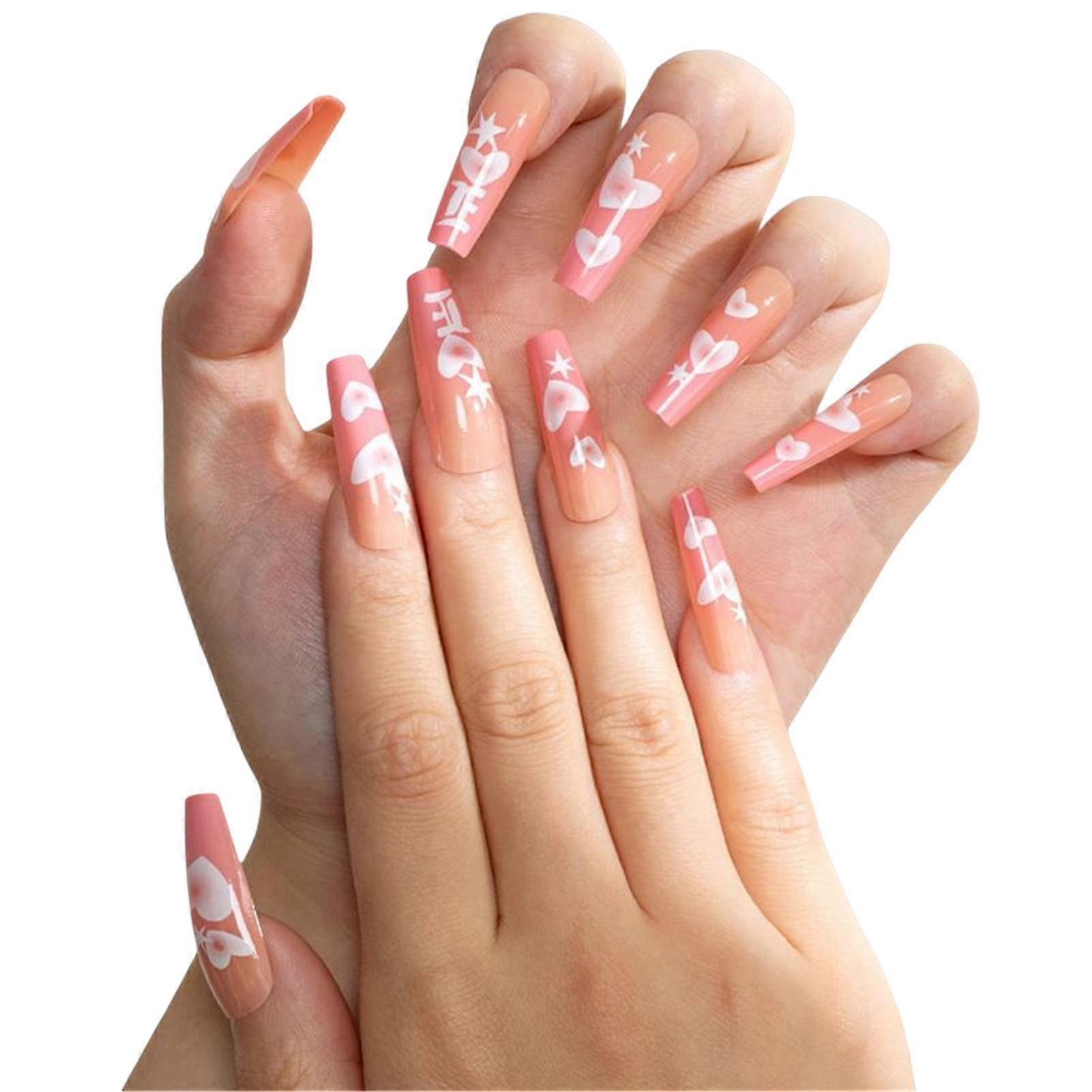 Heart Priting Press On Nails For Women Durable False Artificial Nails Finger Nail Diy Decoration Women