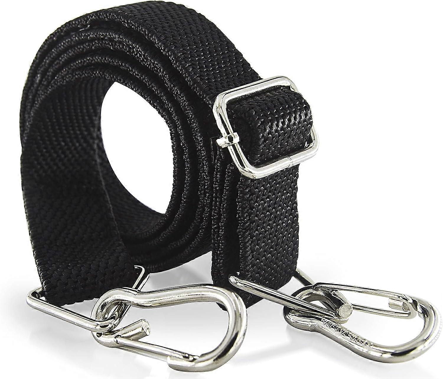MATERIAL: Using polypropylene yarn to wrap and fill in latex yarn weaving technology, not easy to break. DURABILITY: The galvanized manganese iron hook with a diameter of 0.19 inches and a bending diameter of 1 inch can be heavy duty useful. SIZE and PACKAGE:2448 inch length,1.2 inch width,0.17 inch thickness,hook diameter 0.19 inch. 1 strips of 48 inch adjustable black flat bungee cords. STABLE: The flat bungee cord with hook surface can add more friction and better hold the goods,better than round bungee. USAGE: Great for Snowmobiles, Jet Ski's, Kayaking, Boating, Paddle Boarding and storage and organization of your Garage, Utility Sheds, utility Trucks, Golfing, Tarping and much more.