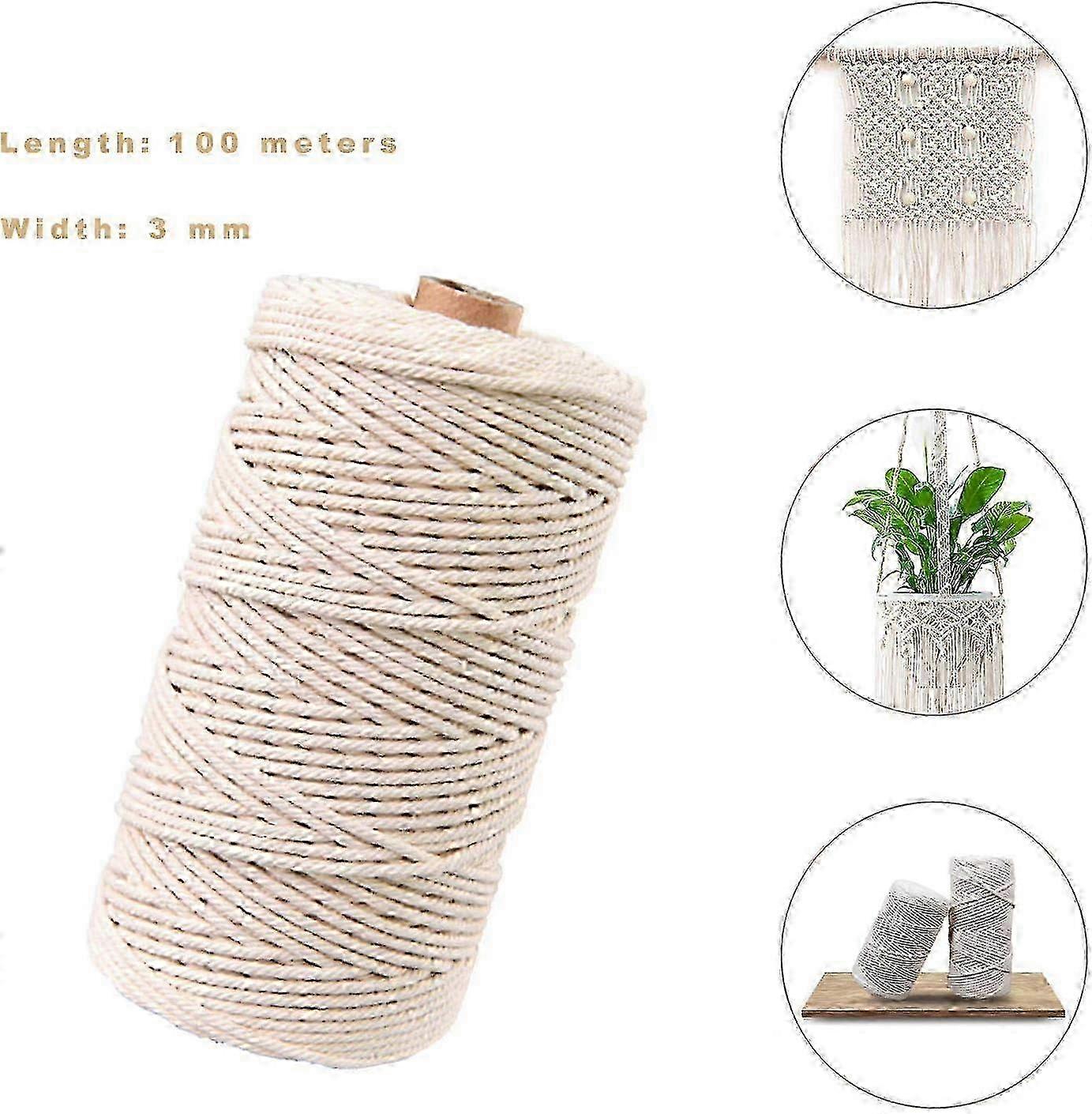 Rope Natural cotton yarn, cotton yarn craft, white cotton cord, DIY cord, macrame yarn (100M-3mm)