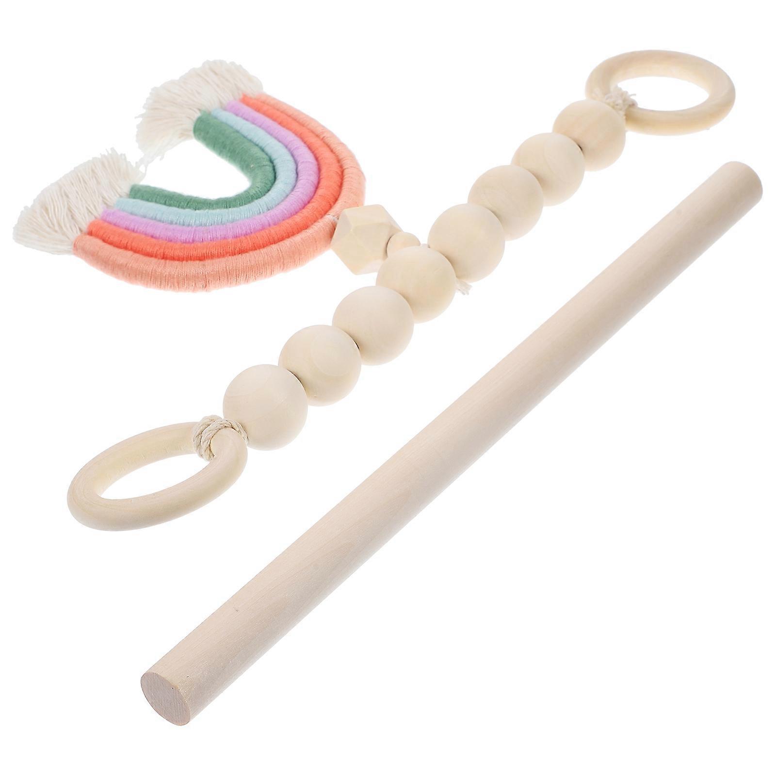 Wood Beads Curtain Tie Rope with Rainbow Tassel for Curtain Use 1Set