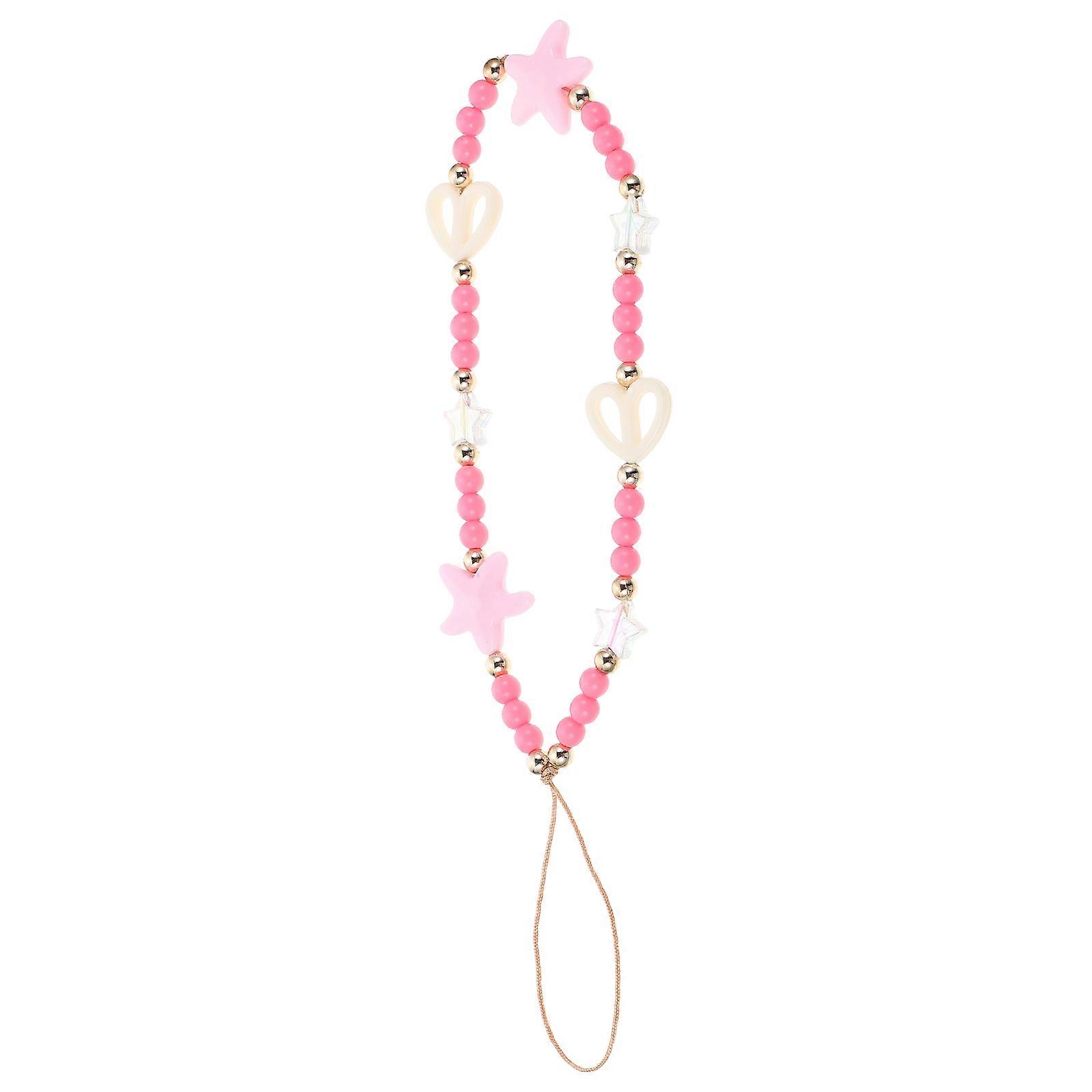 Acrylic Phone Lanyard Hollow Heart Beaded Strap for 2Pcs Mobile Phones