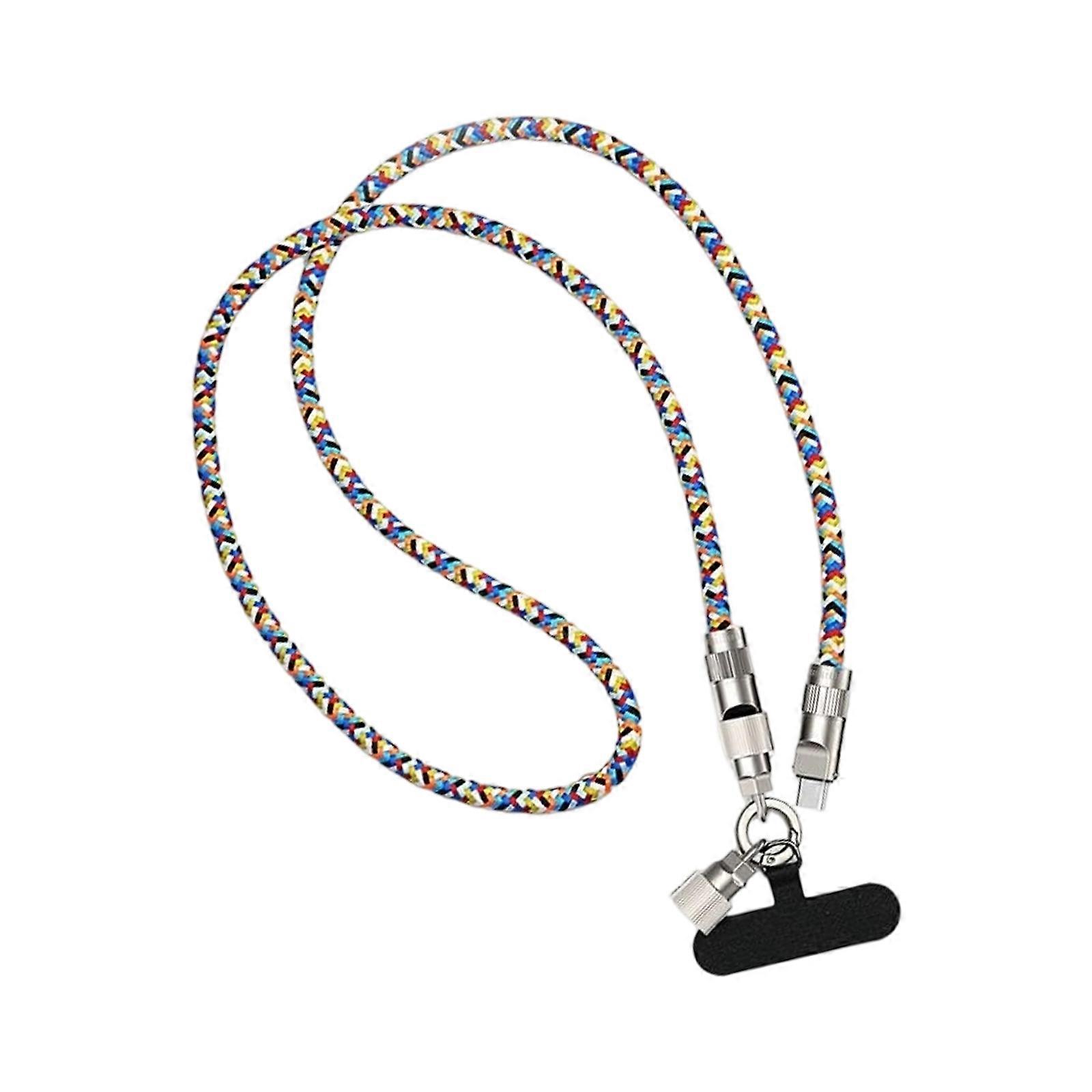 Phone Lanyard Charging Cable Tethers 60W Fast Charging Rainbow Braided Cord with Rotating Snap Lock for Active Lifestyle Multicolor