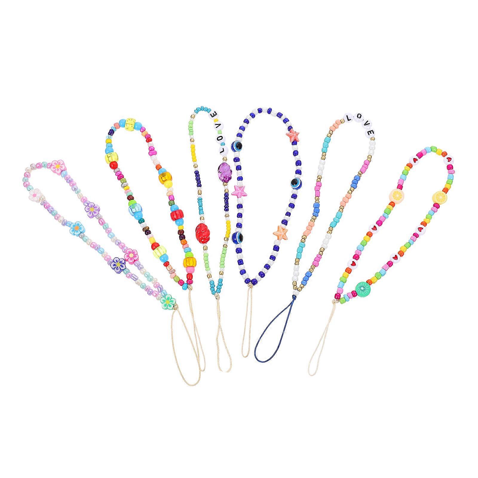 Phone Lanyard Beaded Cellphone Lanyards for Anti-Lost Use 6Pcs