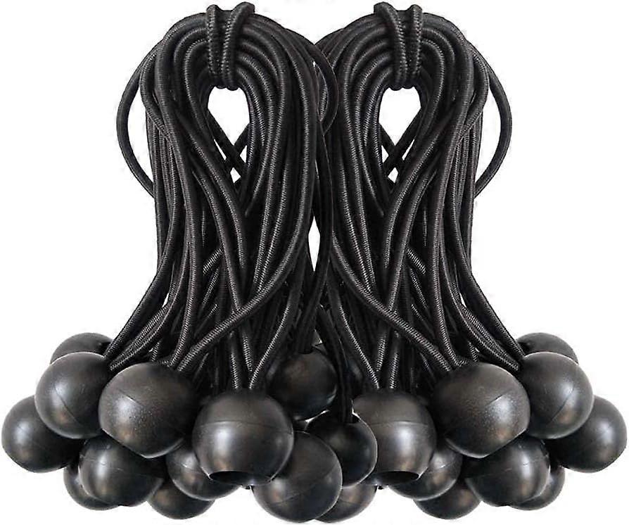 Ball Bungee Cords, 50 Packs, 4 Inch Black Tie Down Cords for Tarp, Canopy