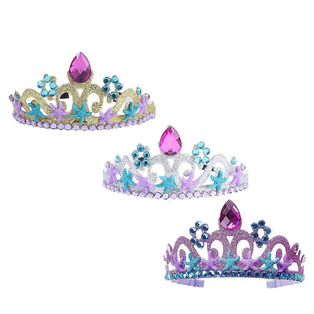 Ocean Themed Crown Hair Hoops for Decor 3pcs Assorted Color Non Woven Cloth for Baby Girl