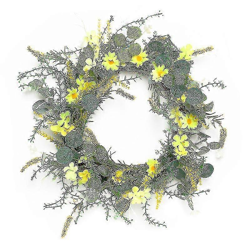 35cm Artificial Chrysanthemum Daisy Flower Wreath With Green Leaves