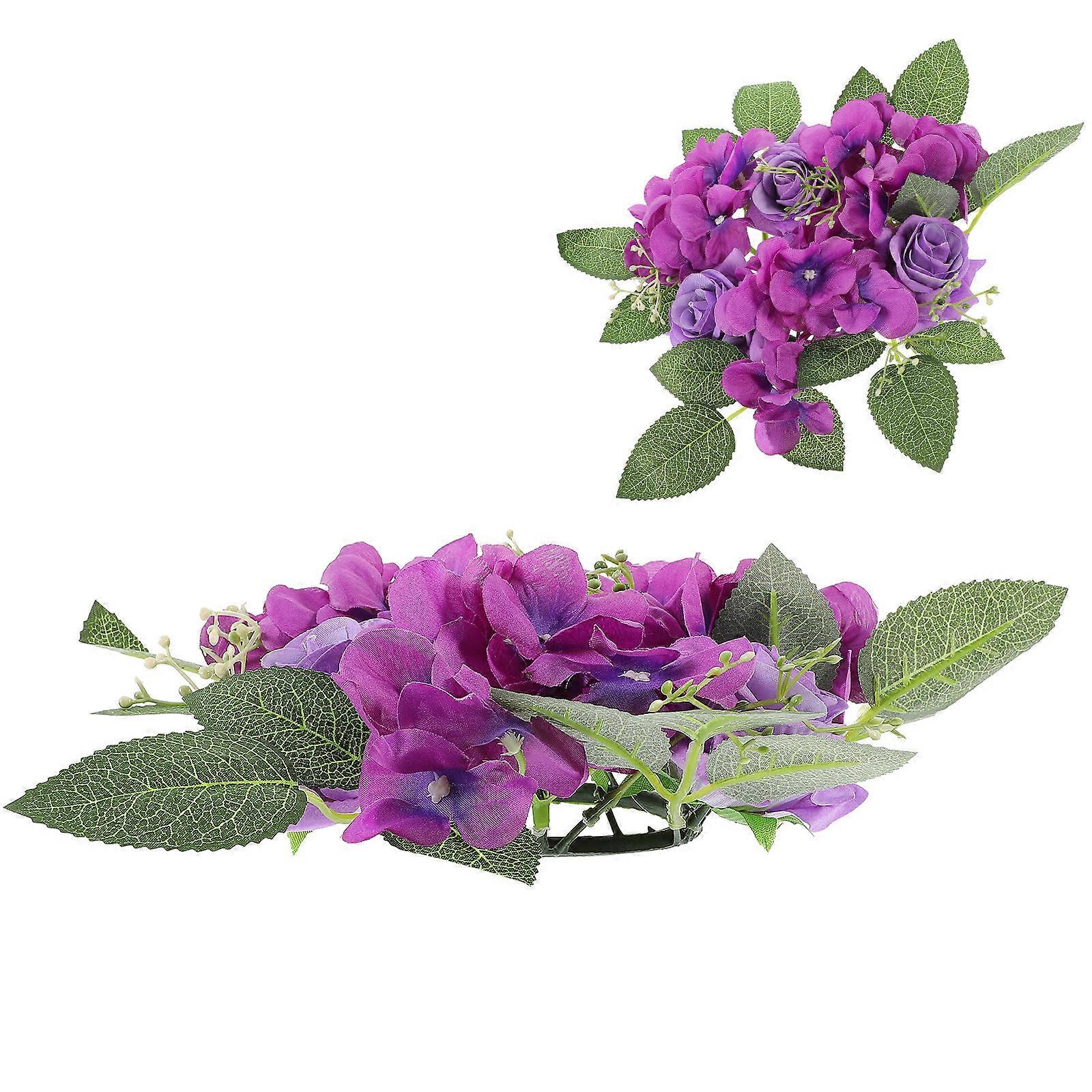 Purple Artificial Rose Candle Wreath Candle Rings for Decoration