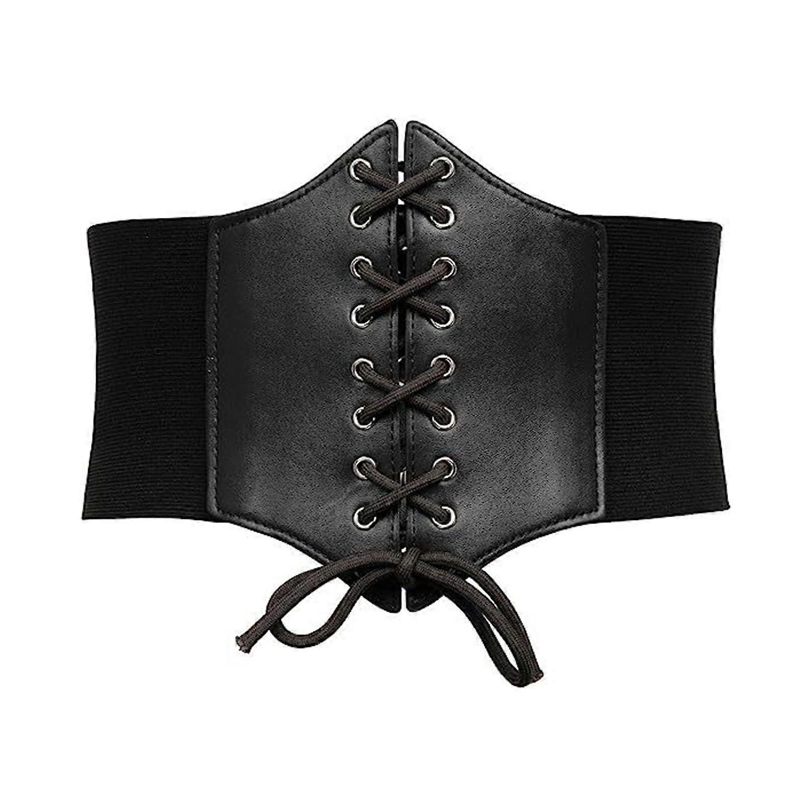 Women Corset Elastic Waistband Lace-up Wide Belt Solid Color Imitation Leather Outfits Dresses Tops Waist Cincher