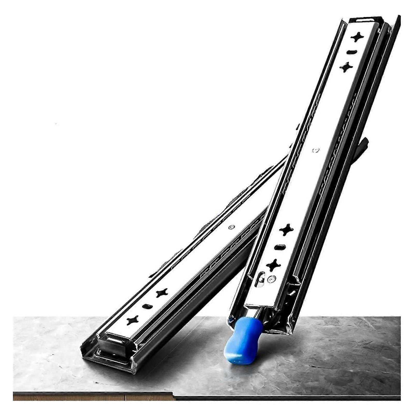 - Durable Construction: The metal catches and solid ball bearings ensure that these strong drawer slides remain securely in your cabinet, providing long-lasting performance and reliability. - Easy Installation: With clear instructions and precise measurement guidelines, you can easily install these drawer slides without hassle, making it an ideal choice for both DIY enthusiasts and professionals. - Smooth and Silent Operation: The independently located ball bearings, double spring, and piston damper work together to create a smooth and silent glide. Say goodbye to slamming drawers and enjoy a quieter environment. - Versatile Applications: Perfect for kitchen cabinets, office drawers, and garage storage, these drawer slides enhance accessibility and organization in any space. - Compatibility: Designed to fit standard cabinet sizes, these drawer slides are a practical solution for upgrading your existing drawer systems or for new installations. - Performance: Engineered for durability and ease of use, these drawer slides support heavy loads while ensuring smooth operation, making them an excellent choice for high-traffic areas. - Size Options: Available in various lengths to suit your specific needs, allowing for customizable drawer solutions that fit perfectly in your cabinetry. - Maintenance-Free: The robust design minimizes wear and tear, reducing the need for frequent replacements and ensuring ongoing functionality.