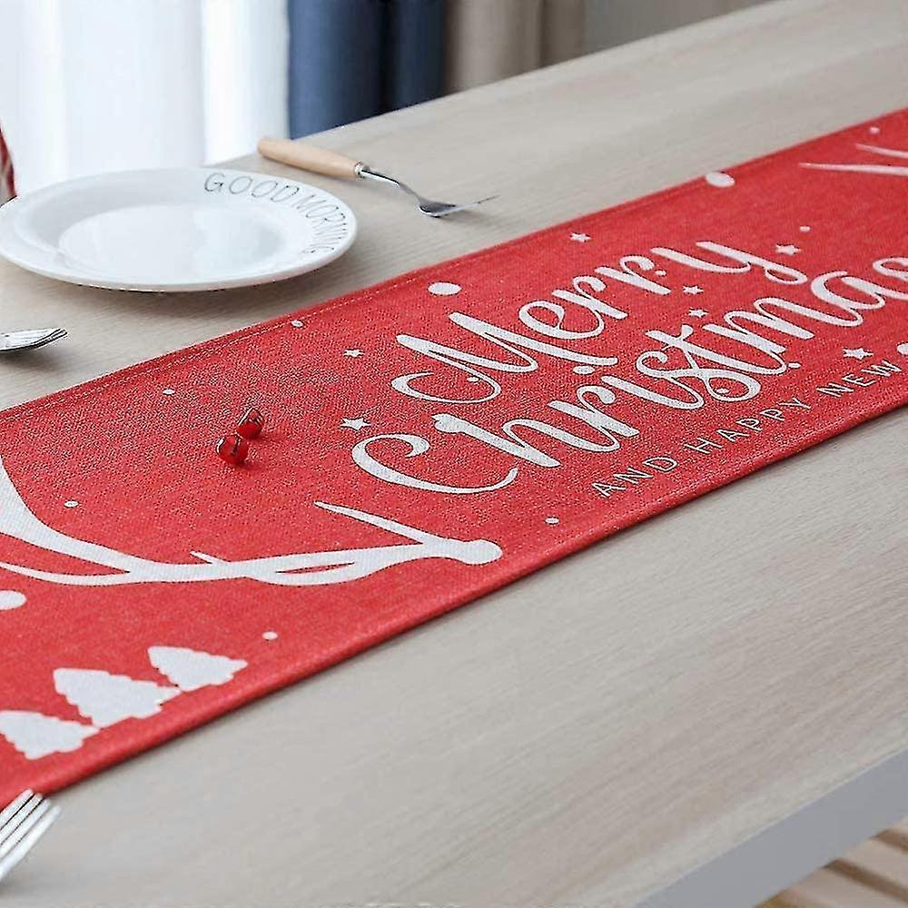 Red Christmas Table Runner, Table Runner With Christmas Motif, Table Runner With Reindeer Embroidery