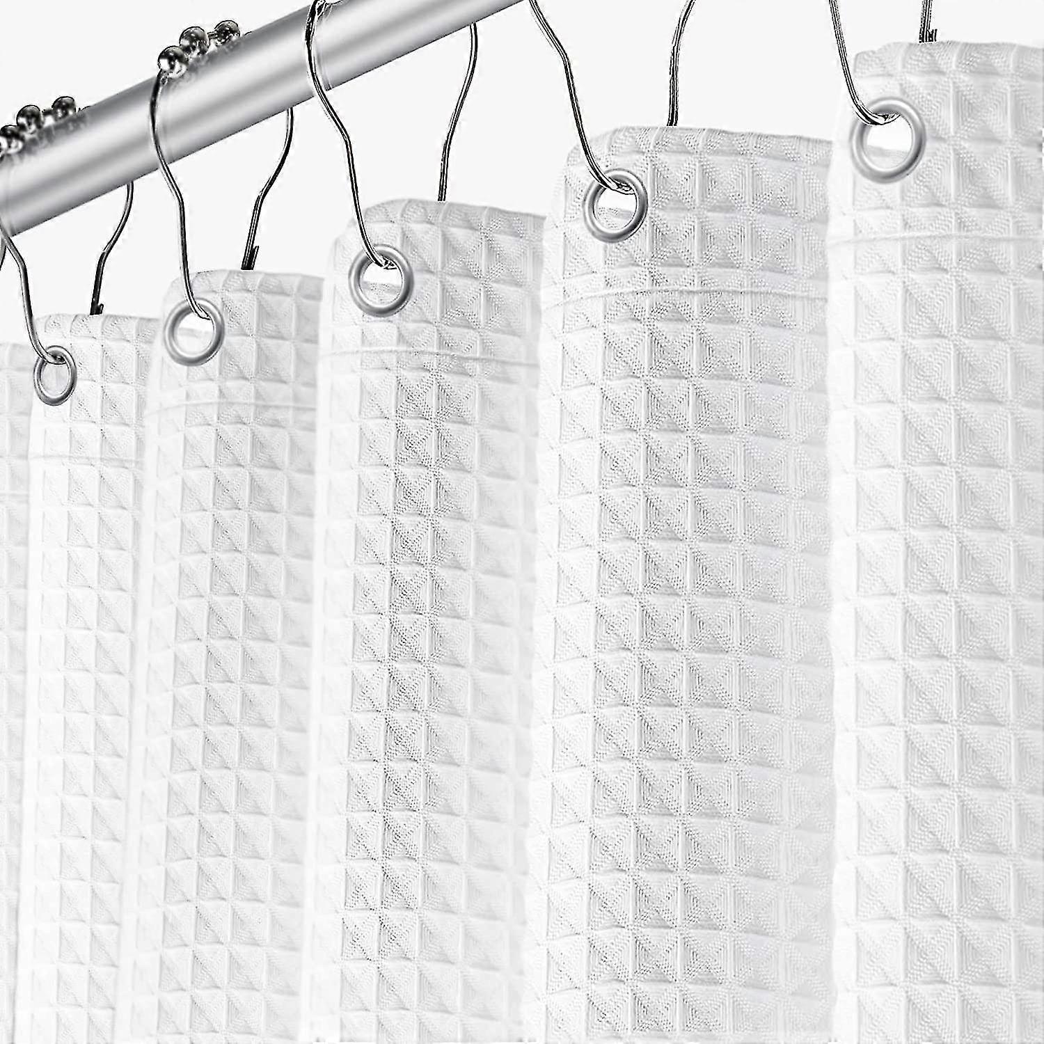 25-26 White Waffle Shower Curtain For Bathroom, Heavy Duty Fabric Cloth Weave Shower Curtains Water Repellent Hotel Quality Shower Curtains, 72 X 72 I