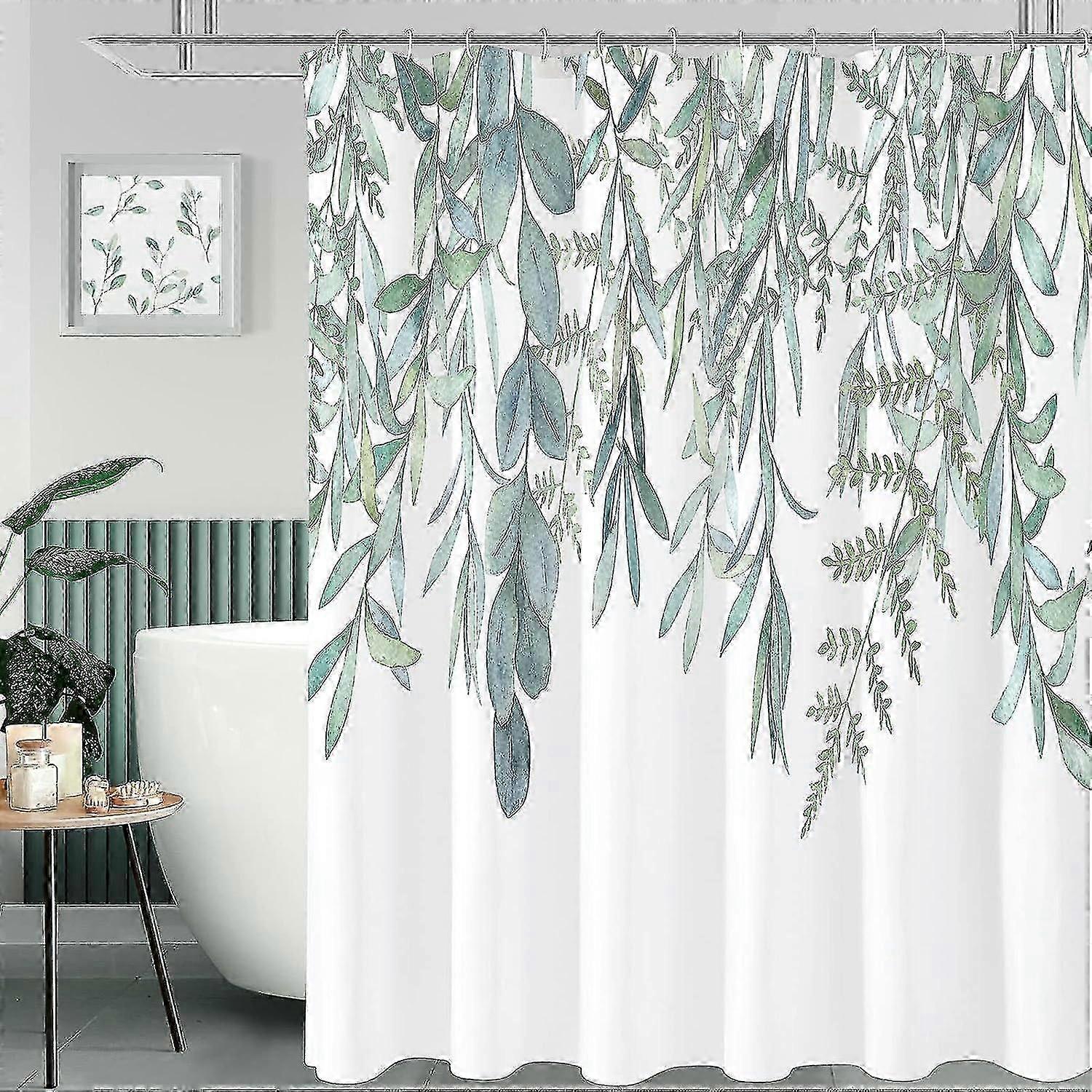 Waterproof Green Eucalyptus Shower Curtain 72x72 Inch with Hooks, White