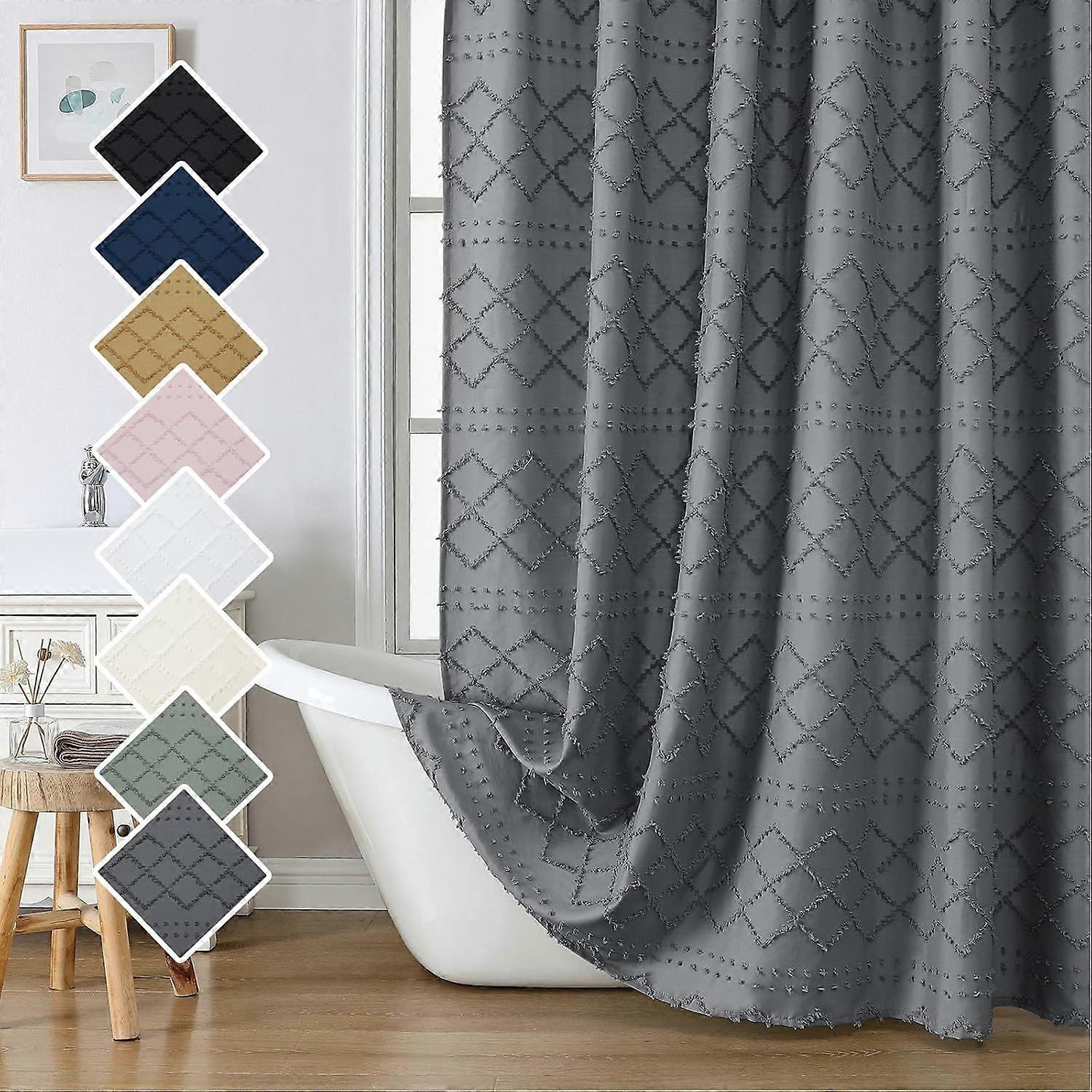 Grey Cloth Shower Curtain 72x84 Inches, Modern Plaid Stripes Pattern Fabric