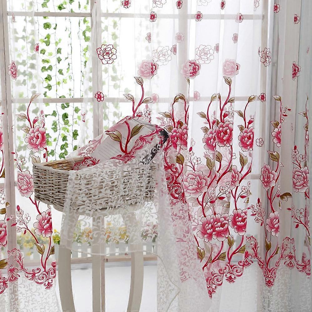 WRXMIJNHGSA Peony Sheer Curtain Tulle Window Treatment Voile Drape Valance 1 Panel Fabric