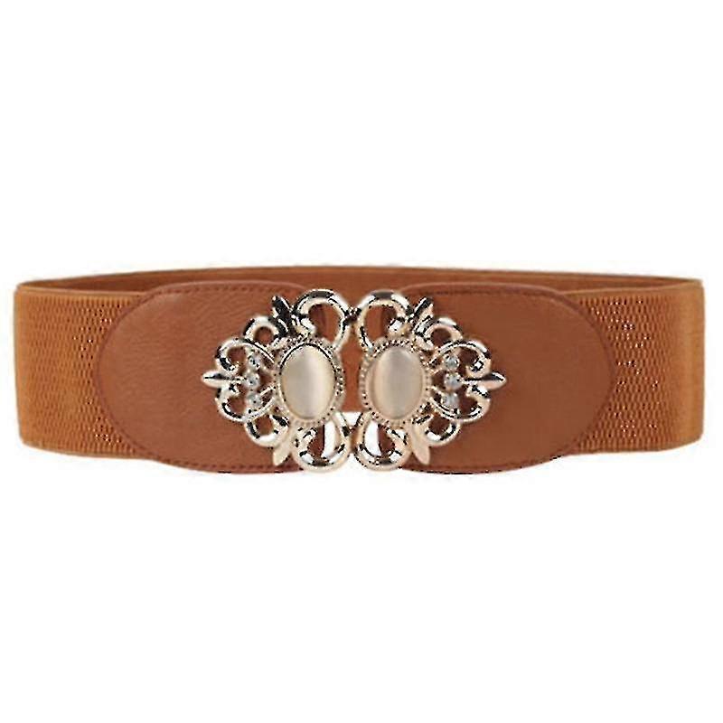 Party Dress Waistband - Womens Stretch Elastic Gold Buckle Wide Waist Belt