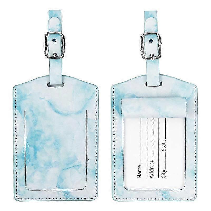 Marbled PU Leather Luggage Tag Oil Edge Sewing With Metal Hardware Buckle