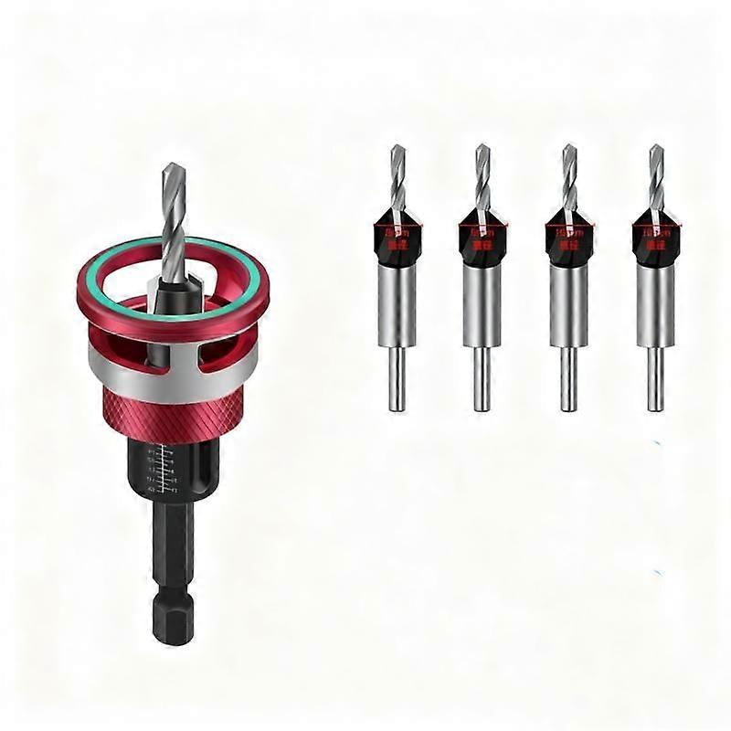 Countersink Drill Bit Set with Depth Stop 4PCS, HCS Four Blades Countersink Bits with Adjustable Depth Stop and L Shape Wrench, Wood Countersink Bit S