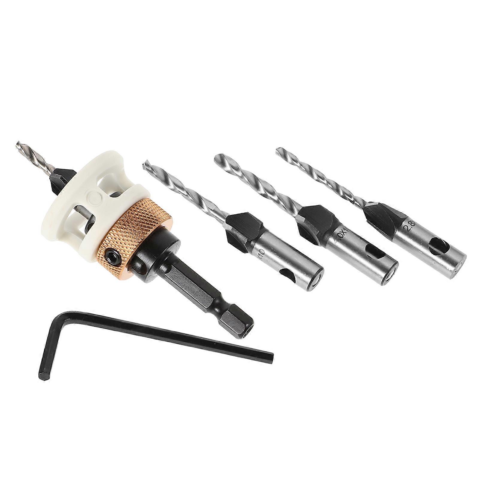 Achieve professional results in your woodworking projects with this adjustable countersink drill bit set. The carbide-tipped bit ensures sharpness and durability, while the four-flute design allows for efficient drilling. The adjustable depth stop feature provides precise control, making it ideal for creating hidden screw holes in various woodworking applications. Features -Color:Assorted Color -Material:Carbon steel -Size:8.40X3.00X3.00cm/3.30X1.18X1.18in -Precision depth adjustment: the adjustable depth stop feature allows for precise control over drilling depth, making it ideal for various wood thicknesses and ensuring accuracy -Smooth and fast drilling: the four flute design ensures smooth and fast drilling, reducing splintering and providing a clean finish on your woodwork -Durable and wear resistant: featuring a durable alloy head, this drill bit is designed to resist wear, ensuring reliability -Aesthetic countersinking: the hidden screw head design ensures screws are countersunk, enhancing the overall appearance of your woodworking projects -Multiple drill sizes: the set comes with various drill bit sizes, offering versatility and meeting diverse drilling requirements for different projects Package list: 6pcs countersink drill bit