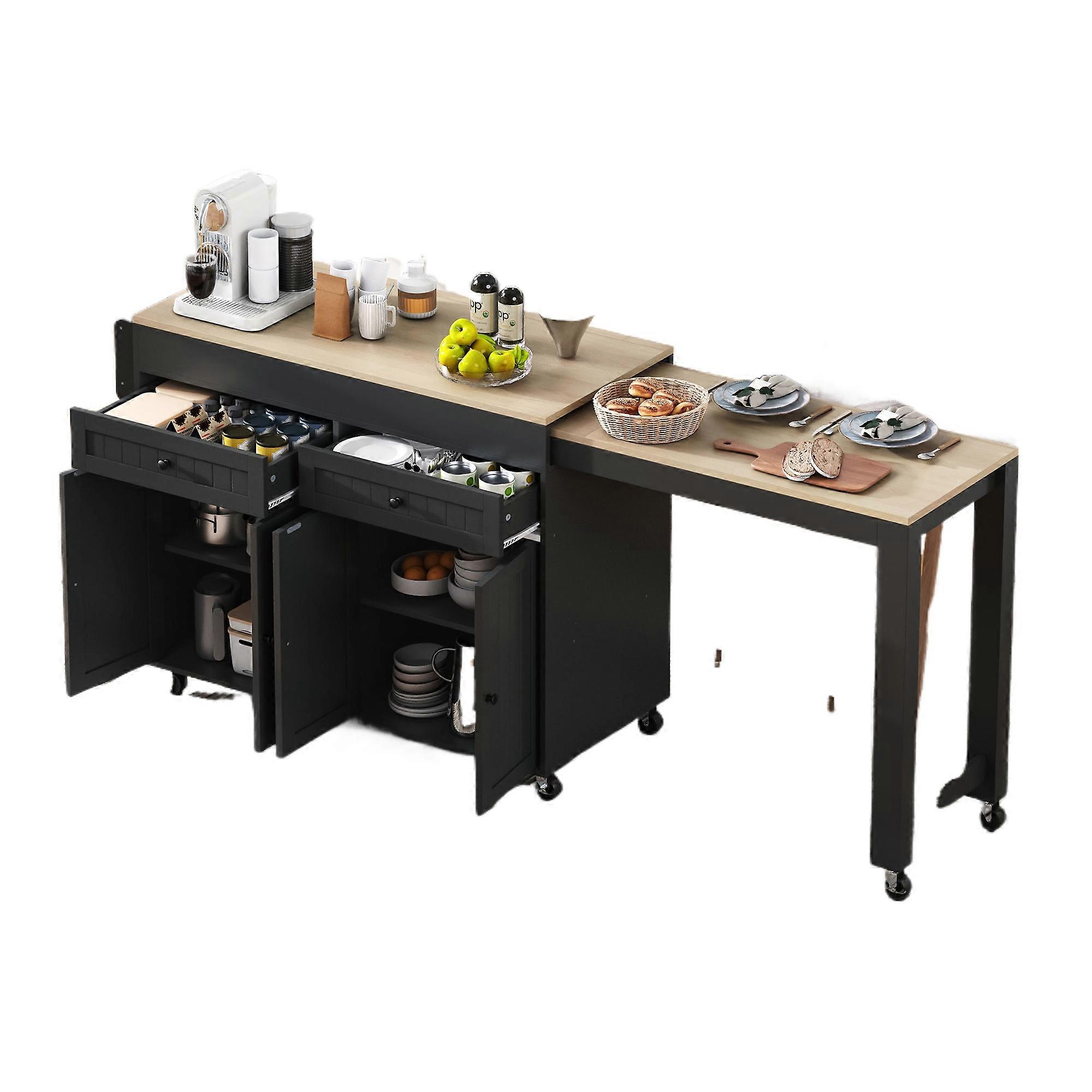 Extendable Black Island Natural Finish Mobile Kitchen Dining