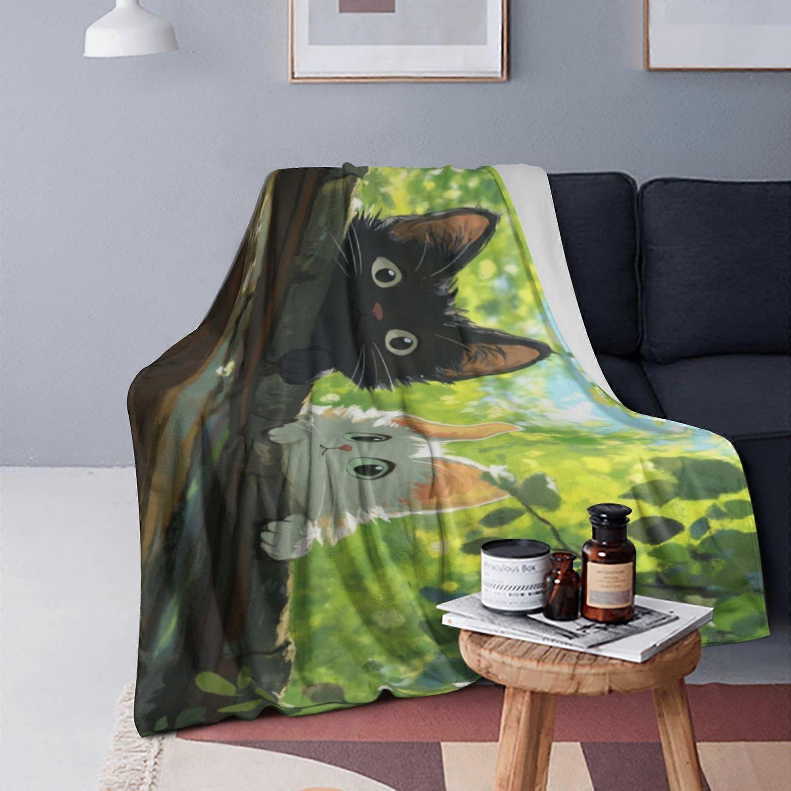 Cozy Flannel Blanket with Whimsical Cat & Butterfly Design - Soft, Warm, All-Season Throw for Home or Gift, Polyester Bl-QAZHG220