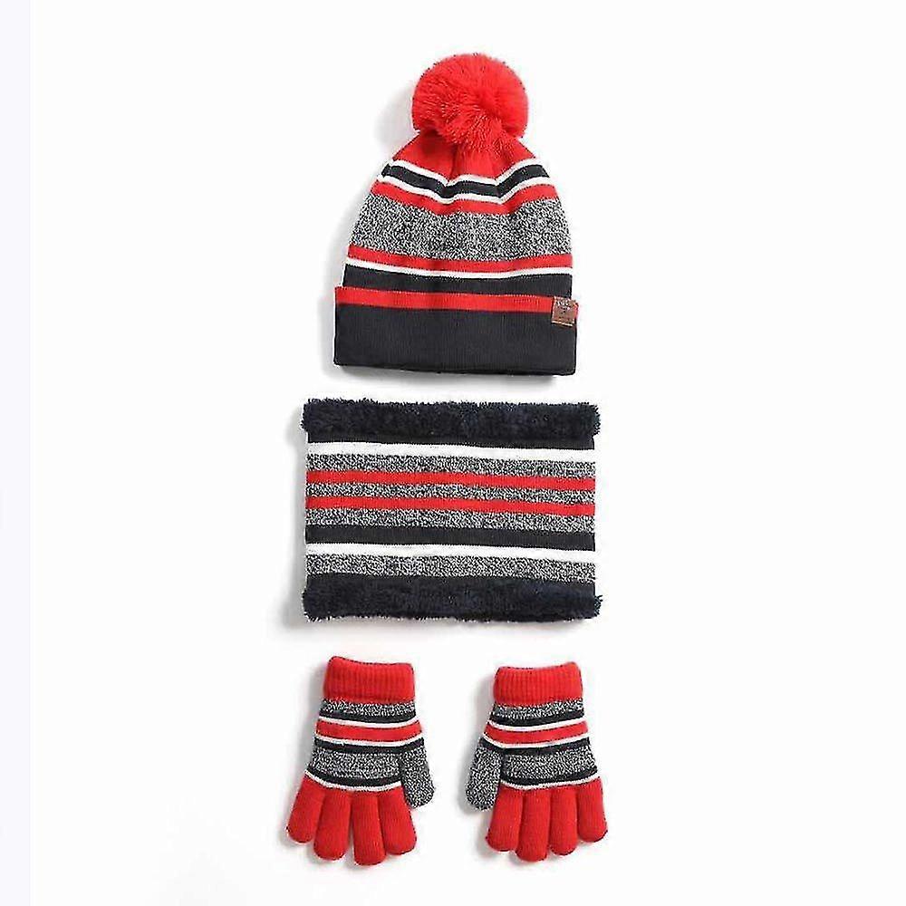 Kids Winter Hat Scarf Gloves Set Warm Knitted Pompom Hat Snood Mittens Y