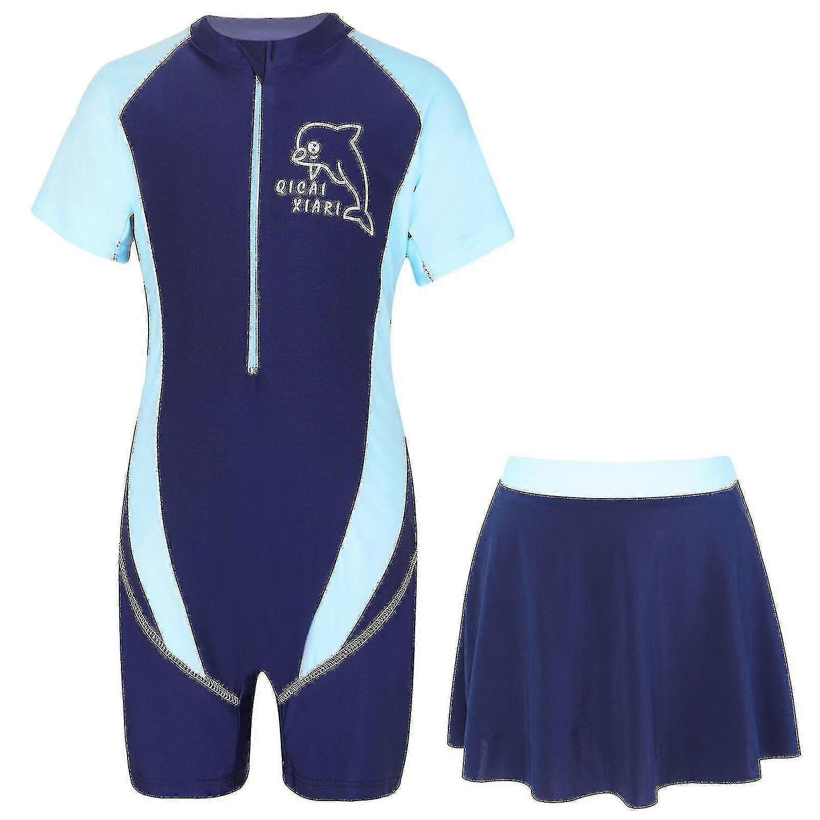 Kids Girls Swimwear Beachwear Sets Front Ipper Cartoon Graffiti Print Patchwork Jumpsuit With Skirt Rash Guard Bathing Swimsuit