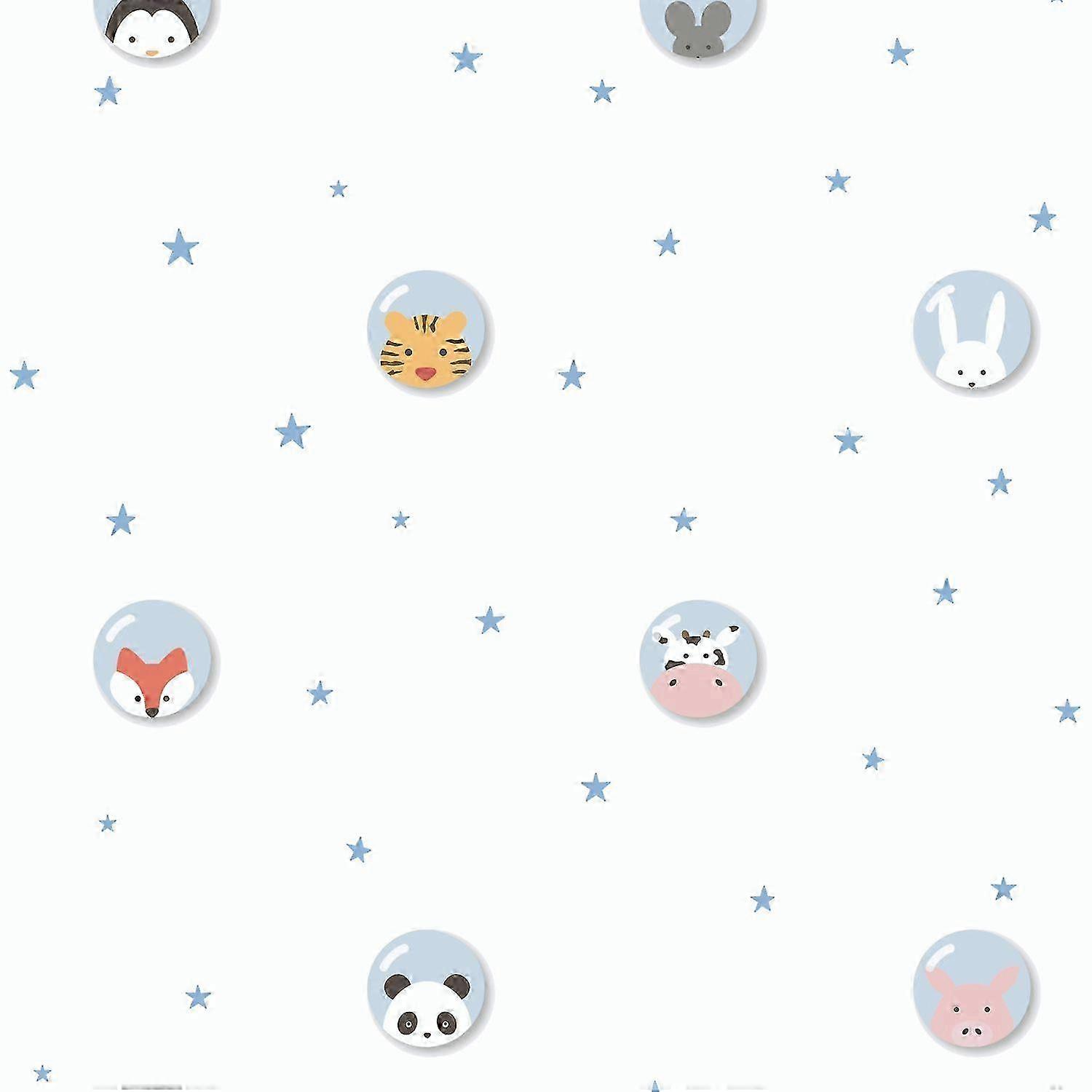 Papel pintado infantil Profhome 381433-GU papel pintado no tejido ligeramente texturado con dibujo infantil mate azul blanco rosa amarillo 5,33 m2