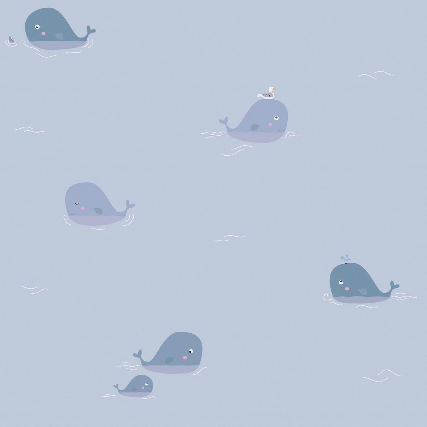 Papel pintado infantil Profhome 381441-GU papel pintado no tejido ligeramente texturado con dibujo infantil mate azul gris blanco 5,33 m2