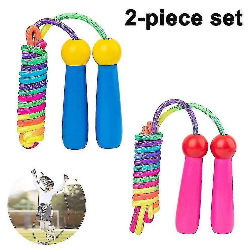 Kids Jump Rope With Wood Handles, Rainbow Jumping Rope(2 Pcs, Blue, Pink)