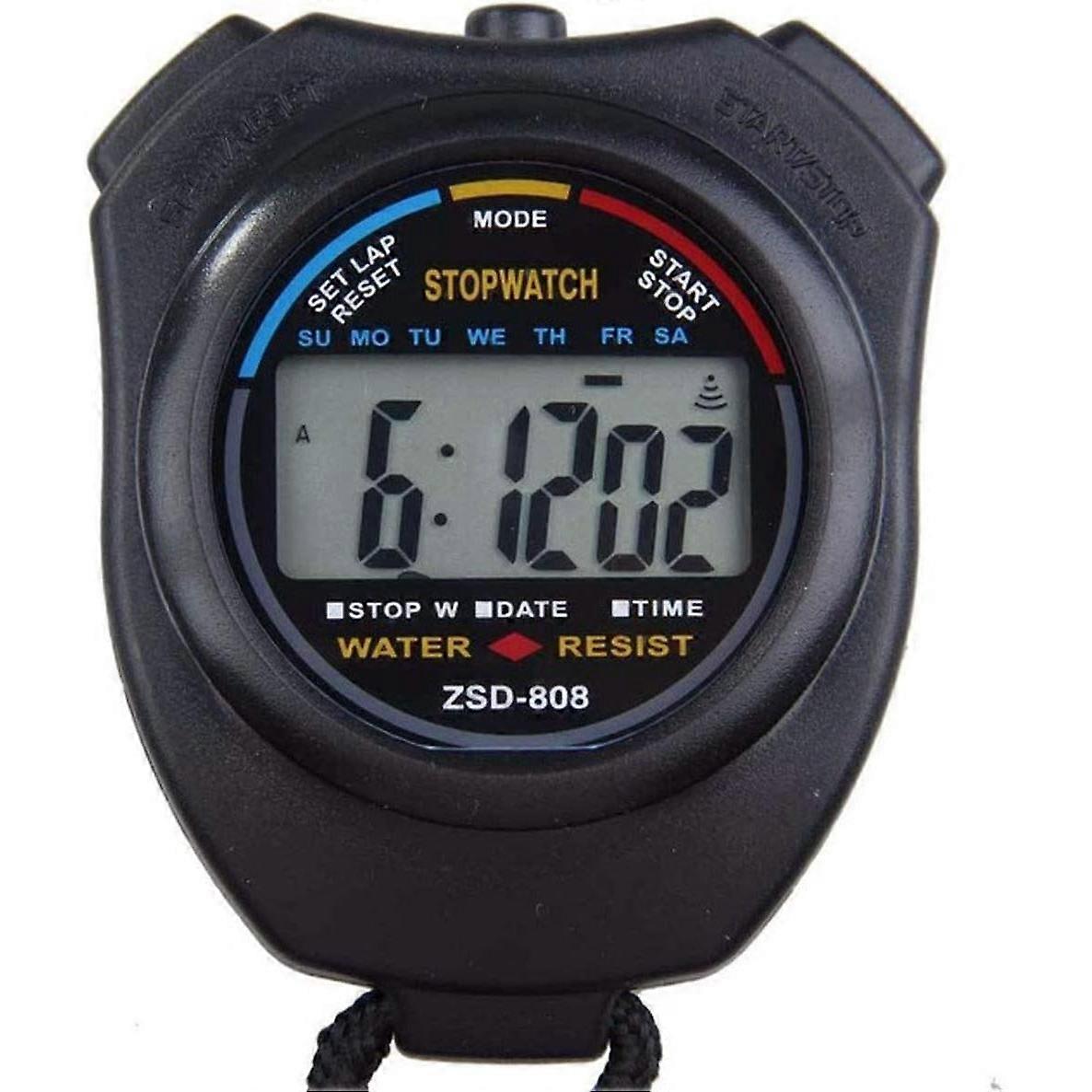 Professional waterproof digital stopwatch, large display with useful functions for sports