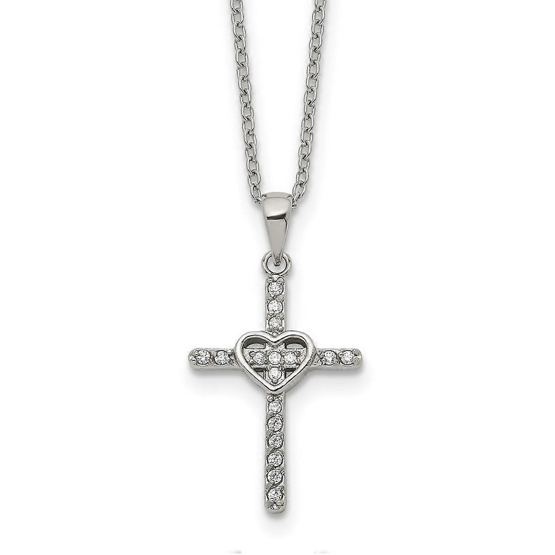 14mm Stainless Steel Polished Cubic Zirconia Religious Faith Cross With Love Heart + 2in Necklace 18 Inch Pendant Neckla